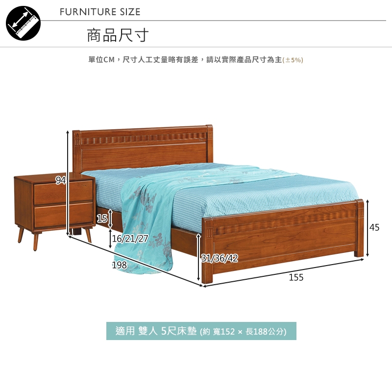 搭配優質五分夾板床板,堅固耐用穩定性佳,呵護您的睡眠品質!