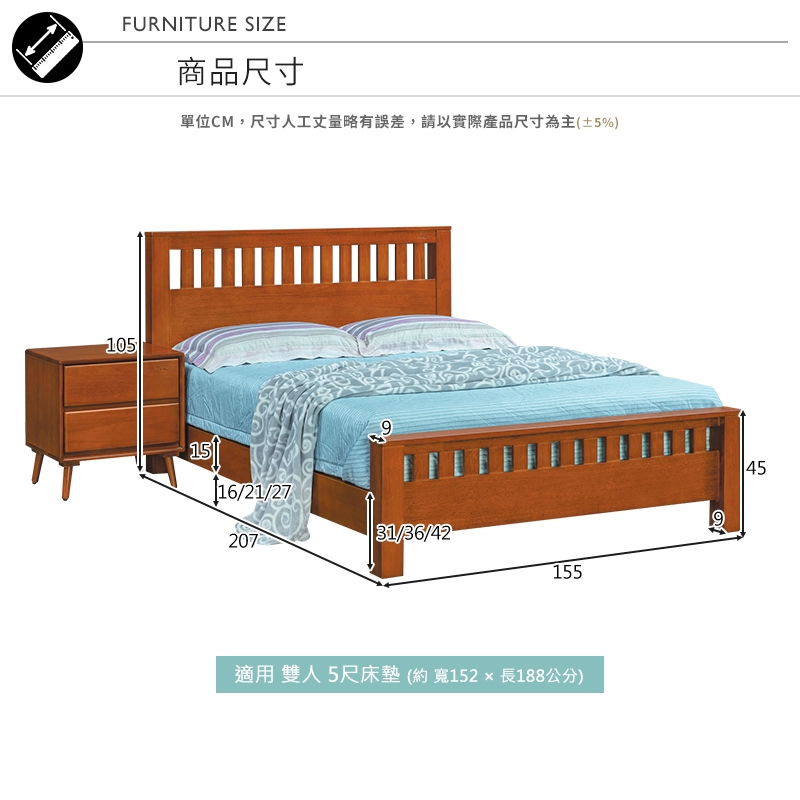 搭配優質五分夾板床板,堅固耐用穩定性佳,呵護您的睡眠品質!