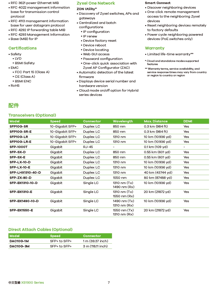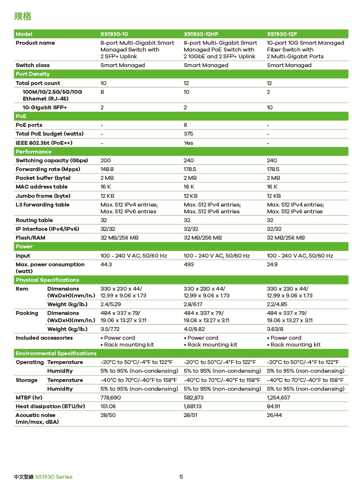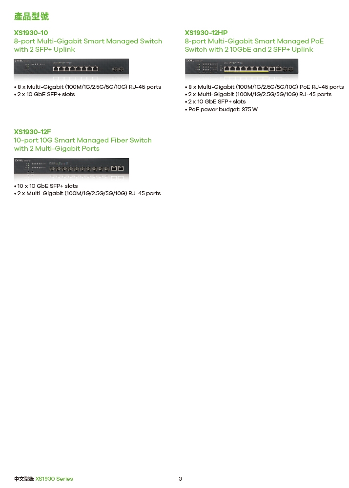 當您的企業採用 XGS1930交換機系列(具有 10G 上行鏈路的Gigabit交換機)時,它最多可承載4個10G光纖埠用於上行鏈路和伺服器連接。這些10G光纖埠也可用於網路擴展,與10G光纖聚合交換機連接。XS1930-12F 擁有先進功能,配有多達10個SFP+光纖埠,可為多個接入交換機提供高頻寬骨幹連接,以靈活滿足各種網路基礎架構需求的佈署。