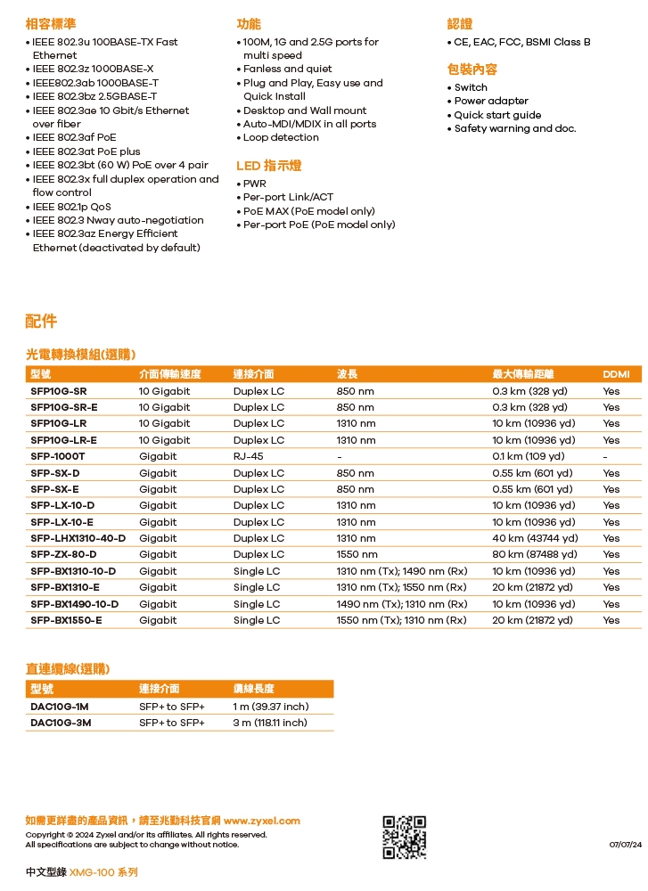 Zyxel XMG-100 系列 2.5G Gigabit 無網管交換器包括 5 埠和 8 埠、PoE 和無 PoE 機型。 這些交換器配備Gigabit 連接埠,最高支援 2.5G 連線速度。具有 3 種連線速度 (100M/1G/2.5G) 自動協商功能,可優化網路設備的性能,包括 WiFi 6/6E AP、2.5G CPE、2.5G NAS/伺服器、4K 串流媒體、附2.5G 網路卡的桌上型電腦、遊戲機、VR 遊戲等。