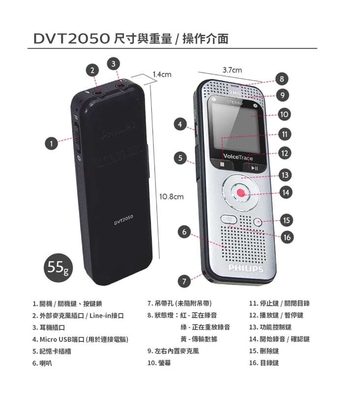 PHILIPS 飛利浦飛利浦 數位多功能立體聲錄音筆 DVT2050