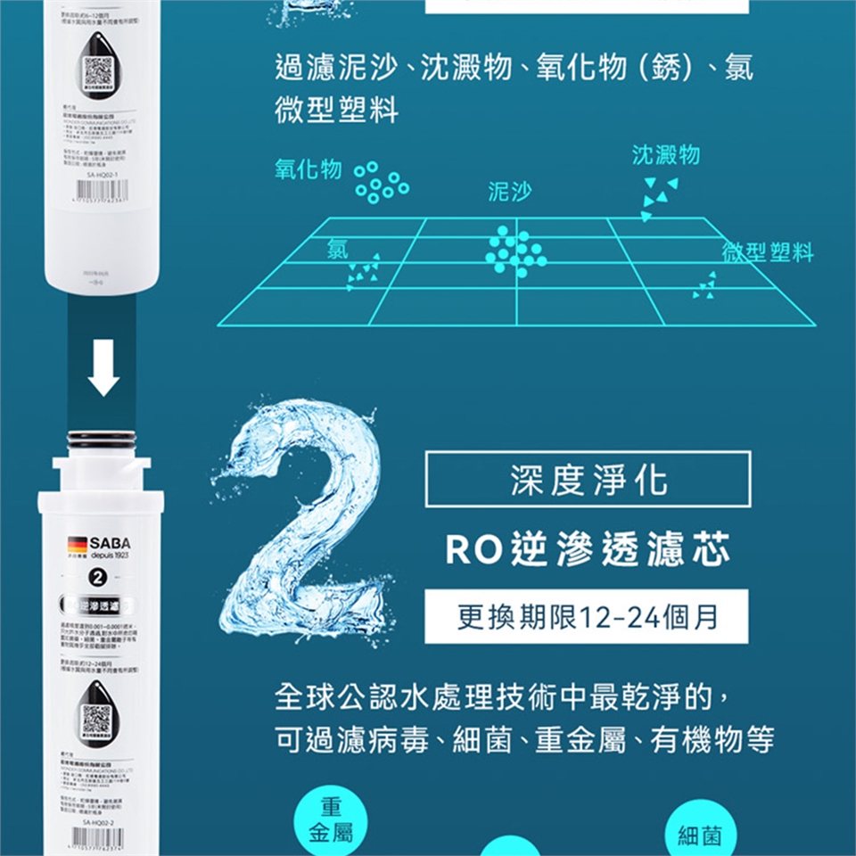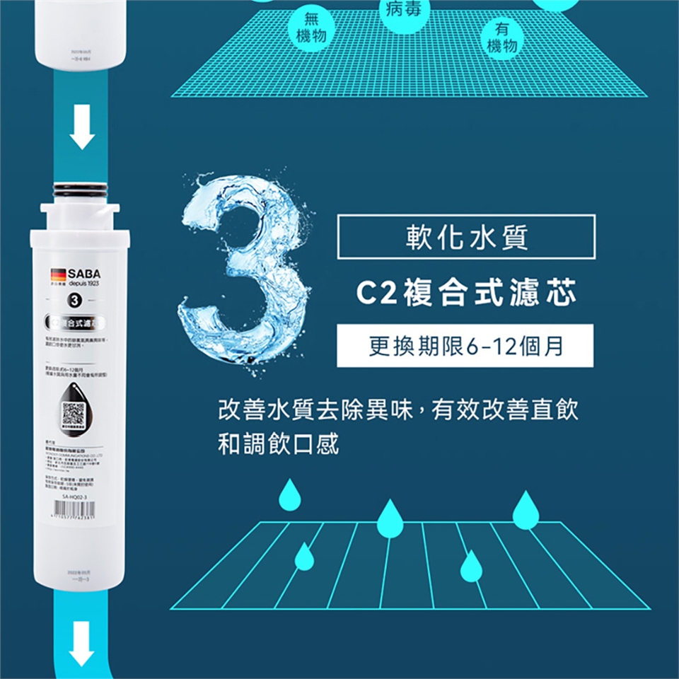 配件:PAC活性碳PP濾芯*1、RO逆滲透濾芯*1、C2複合式濾芯*1、說明書(含保證書)*1