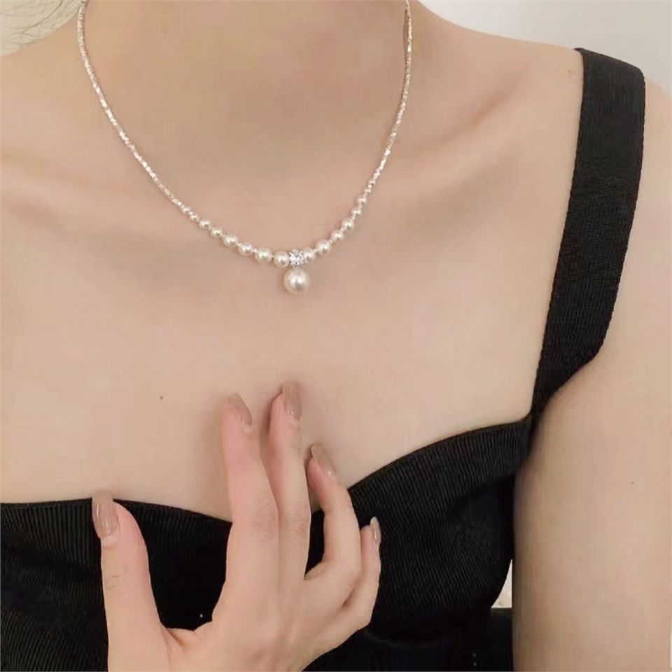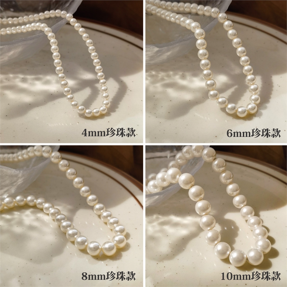 一條閃亮的珍珠項鍊,給人一種簡約又高貴的印象的感覺。