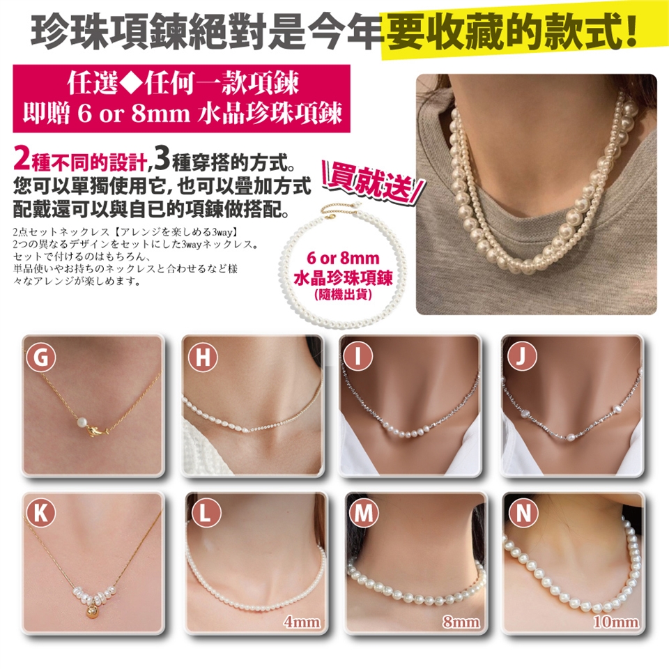 ■本商品頁購買任一款,均贈送『水晶珍珠項鍊』一條,買二款送二條!