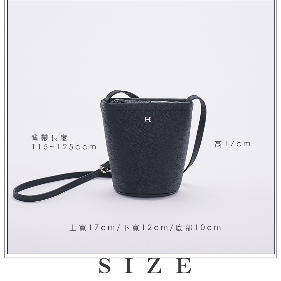 【尺寸】:包體約為上W17 下W12cm / 高17cm/底部10cm/ 背帶長度115~125cm【內部結構】:內拉鍊暗袋X1