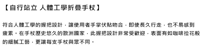 ◆ 手杖結構:紳士經典系列 自行站立 2段式手杖