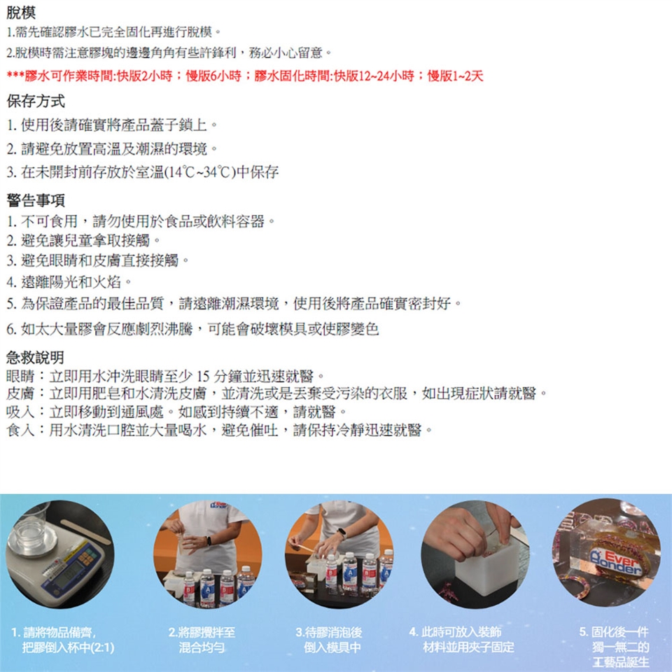 產品特性:適用於灌注、各式DIY(像是大型傢俱、模型、鑰匙圈、杯墊、飾品、藝術品)