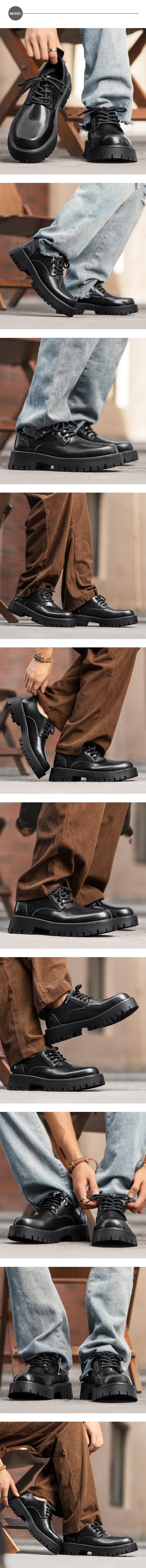 【KIRON】休閒粗跟皮鞋/百搭厚底粗跟休閒皮鞋 男鞋 黑