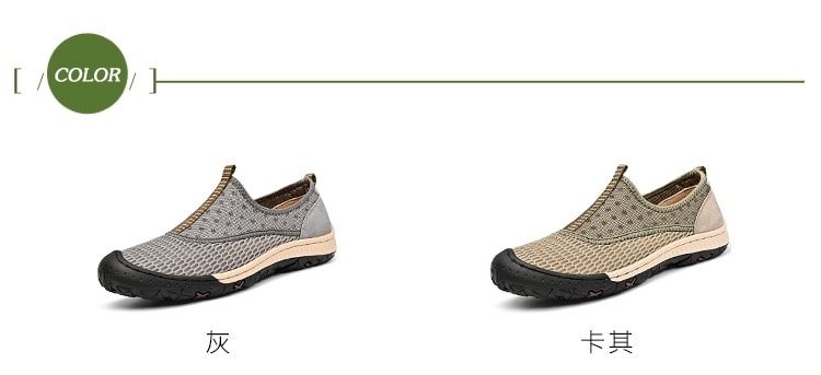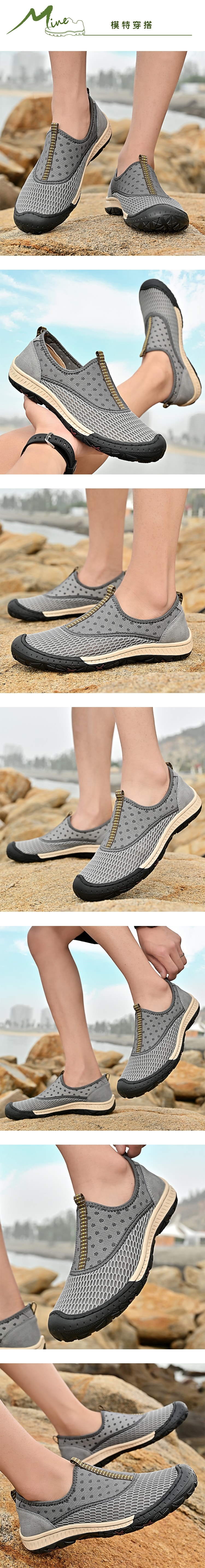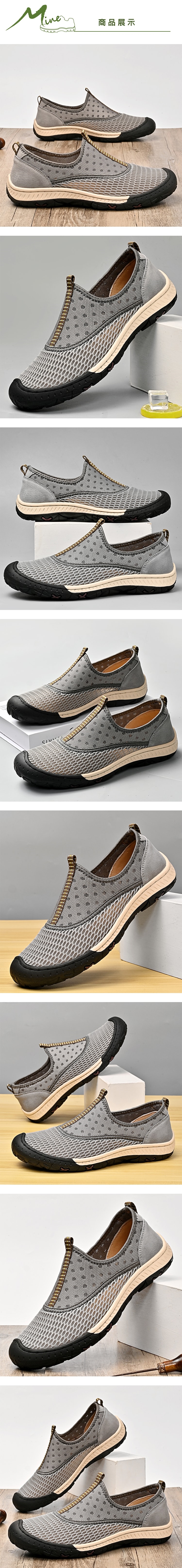 【MINE】真皮網布休閒徒步鞋/真皮3D網布拼接舒適休閒戶外徒步鞋 懶人鞋 男鞋 灰