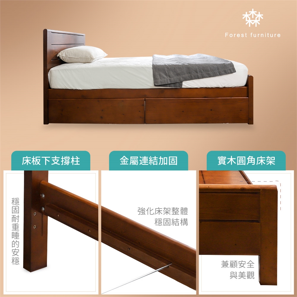 搭配加厚實木夾板床板,堅固耐用不易變形,呵護您的睡眠品質!
