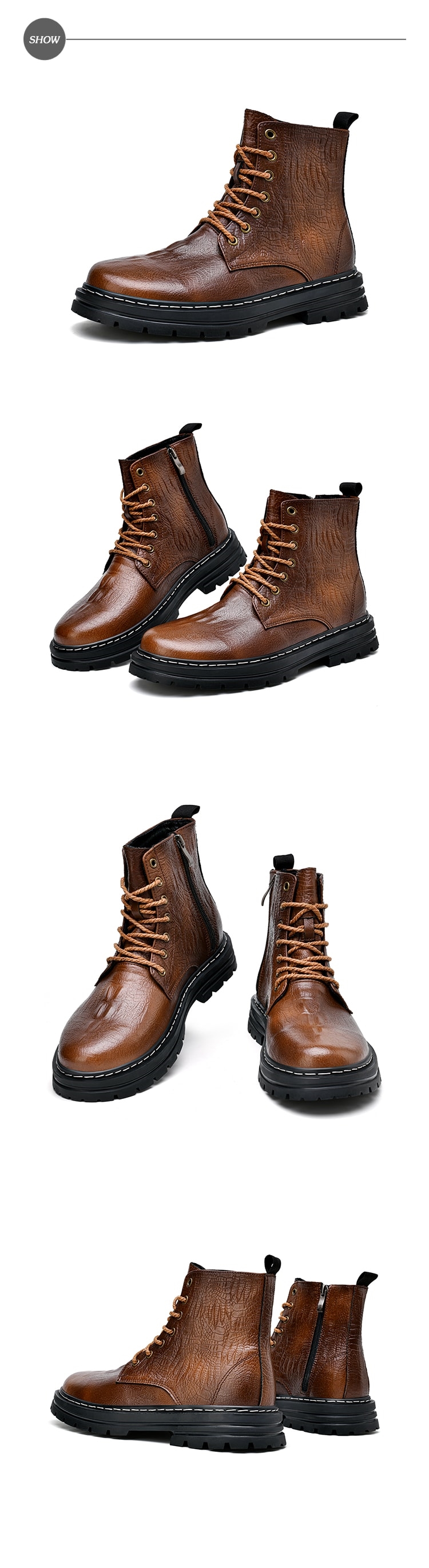 【ANSEL】真皮鱷魚紋繫帶馬丁靴/真皮時尚鱷魚皮紋繫帶休閒馬丁靴 男鞋 棕