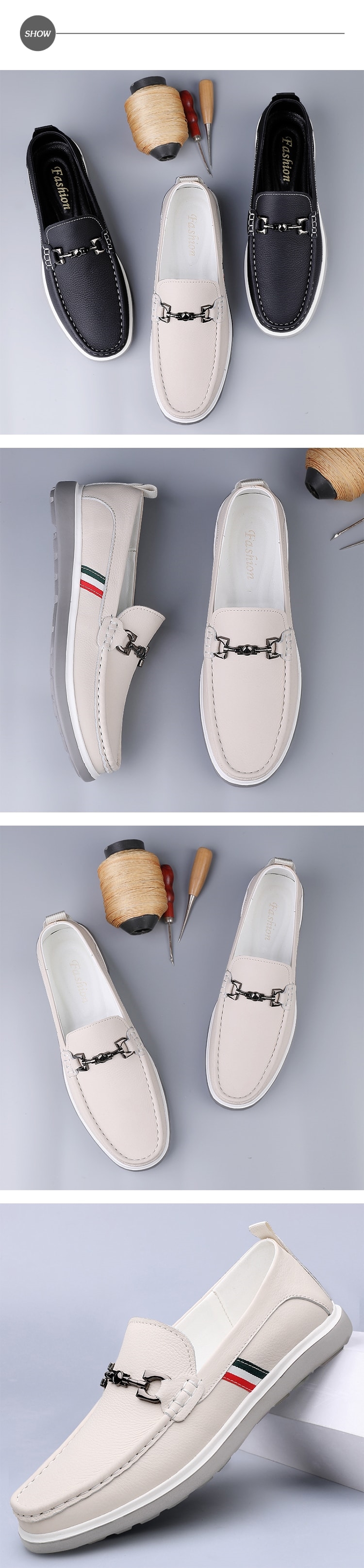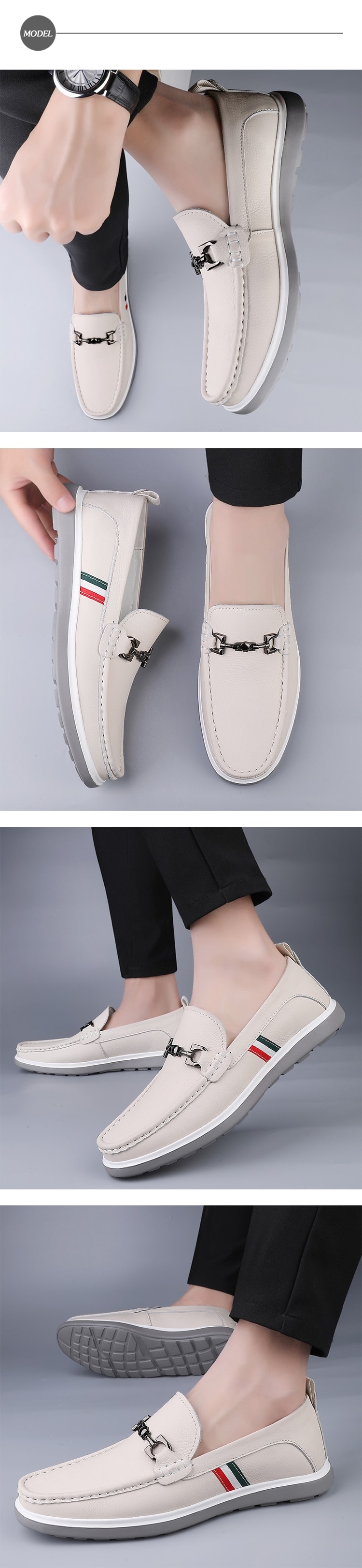 【ANSEL】真皮撞色馬銜扣樂福鞋/真皮撞色織帶馬銜扣飾經典樂福鞋 男鞋 白