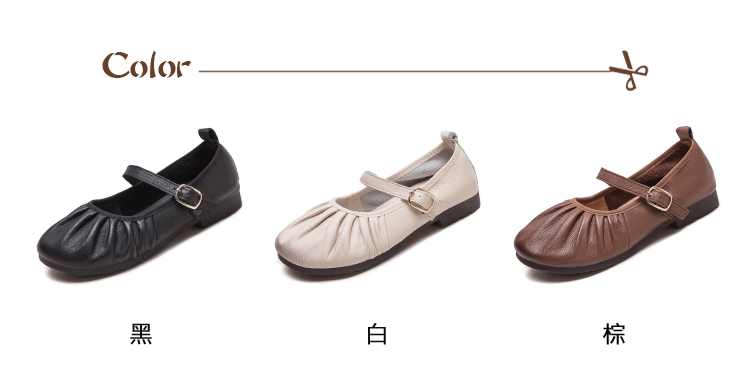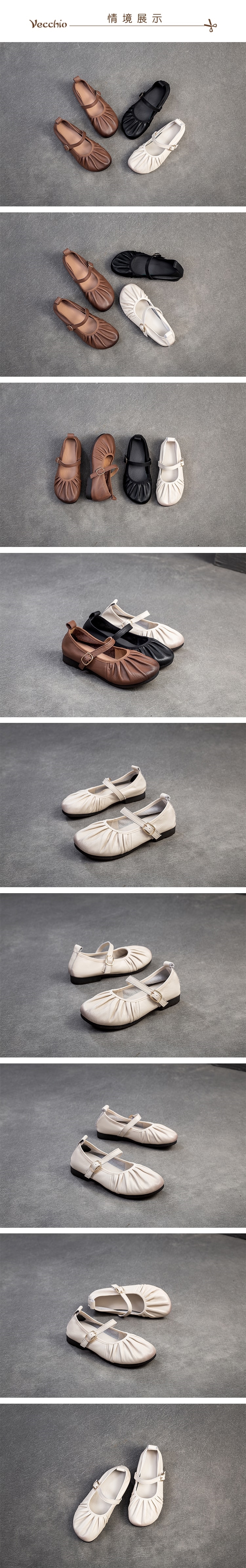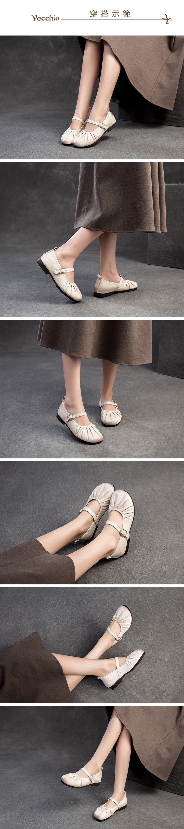 【VECCHIO】真皮淺口抓褶小圓頭低跟娃娃鞋/真皮頭層牛皮淺口抓褶小圓頭百搭低跟娃娃鞋 女鞋 白