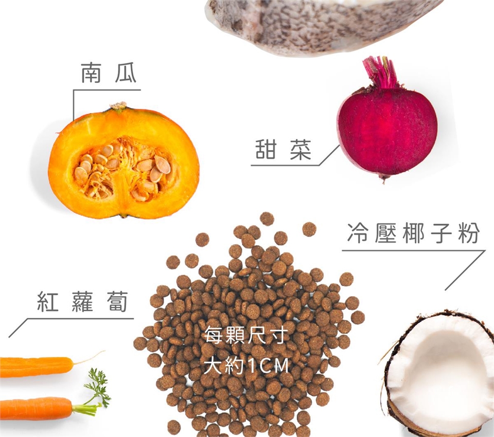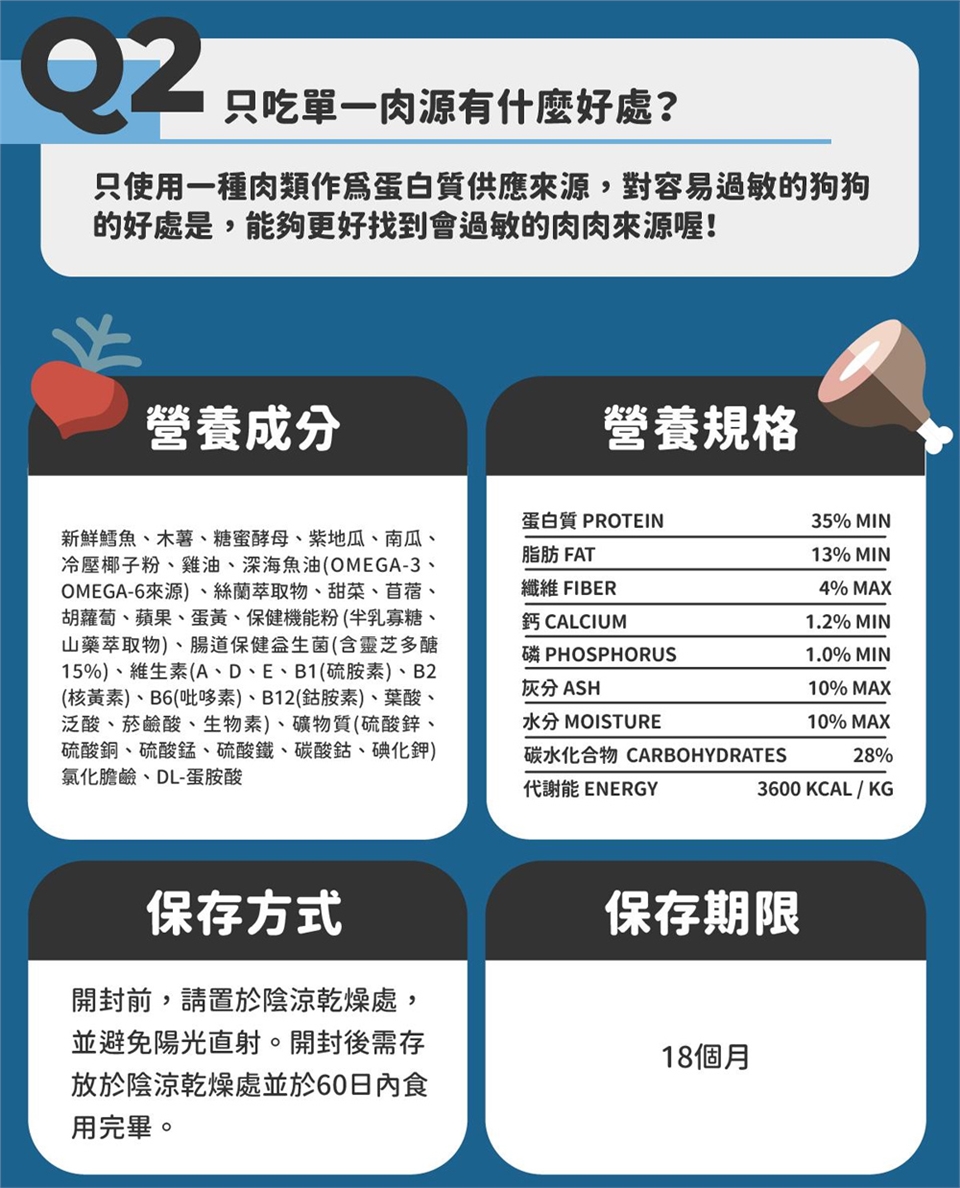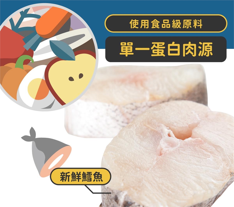2.單一動物性肉源(鱈魚)和易消化的碳水化合物