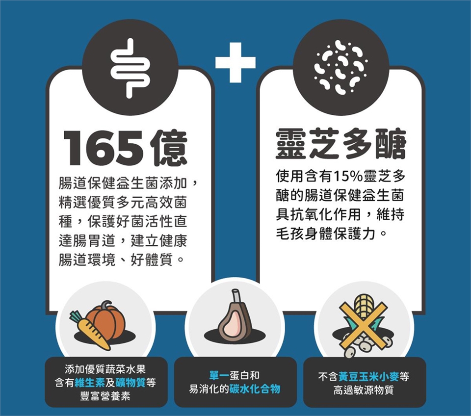 7.腸道保健益生菌含靈芝多醣15%,維持毛孩保護力