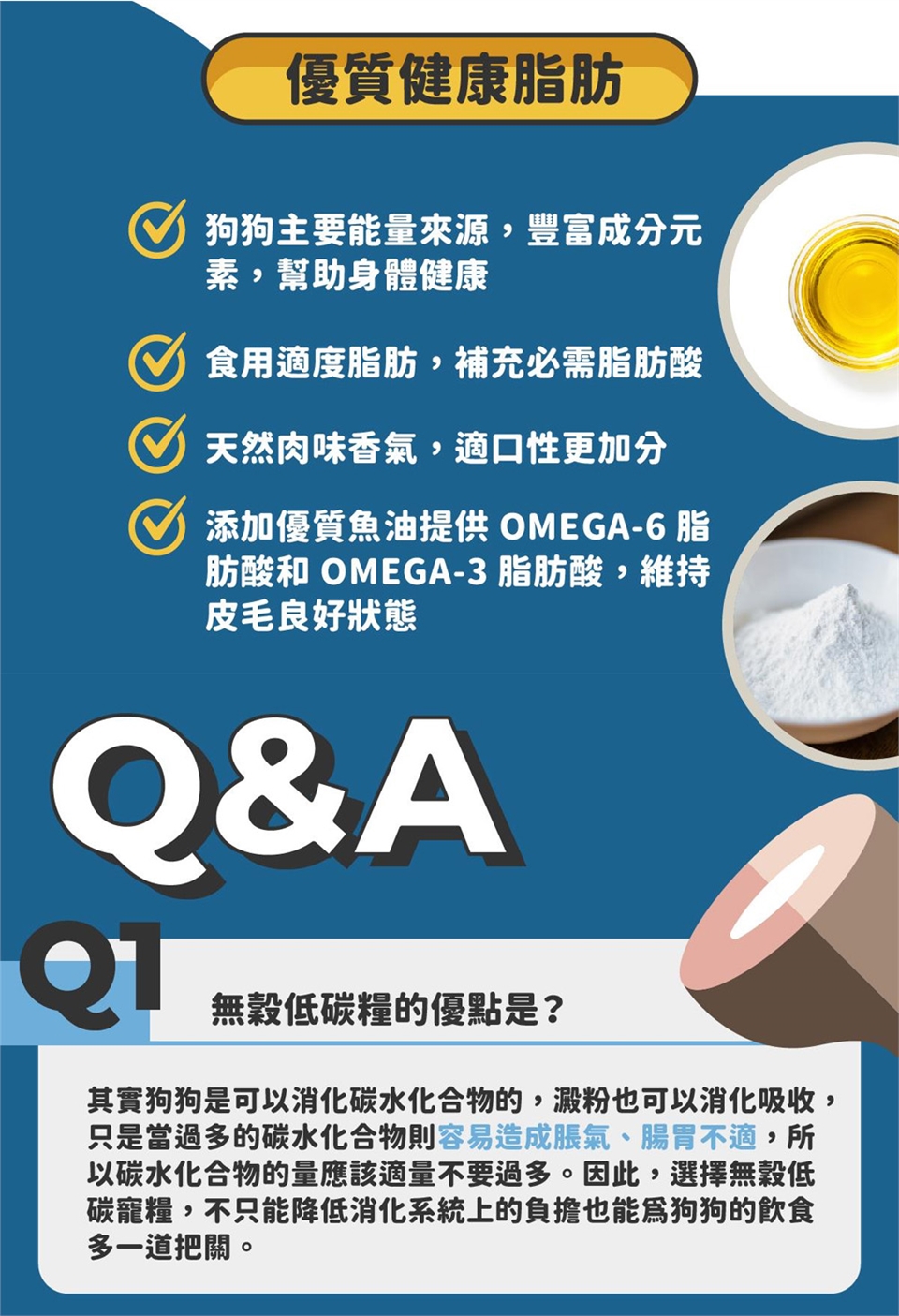4.添加優質魚油,提供Omega-6脂肪酸和Omega-3脂肪酸卵磷脂,可維持皮毛良好狀態