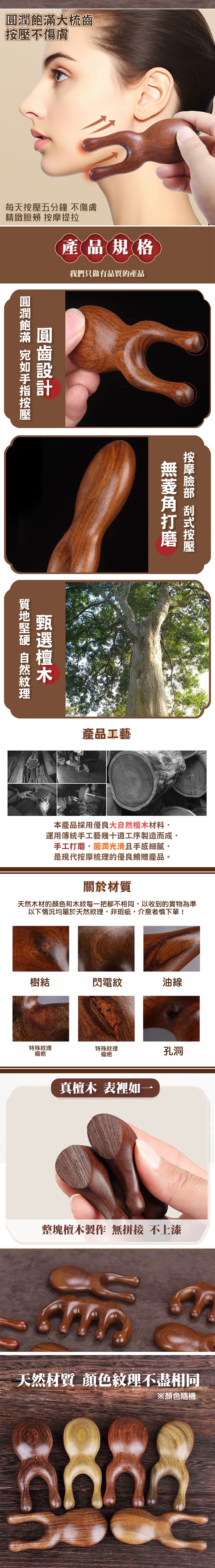優選檀木,360度無菱角,圓潤不刮皮膚