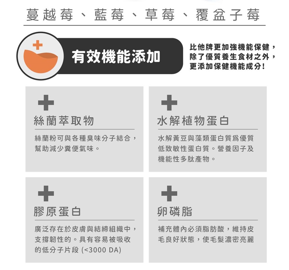 5.添加優質莓果,含有蔓越莓萃取物及貓泌尿道保健等豐富營養素