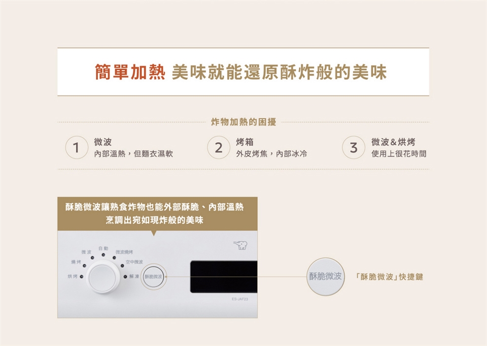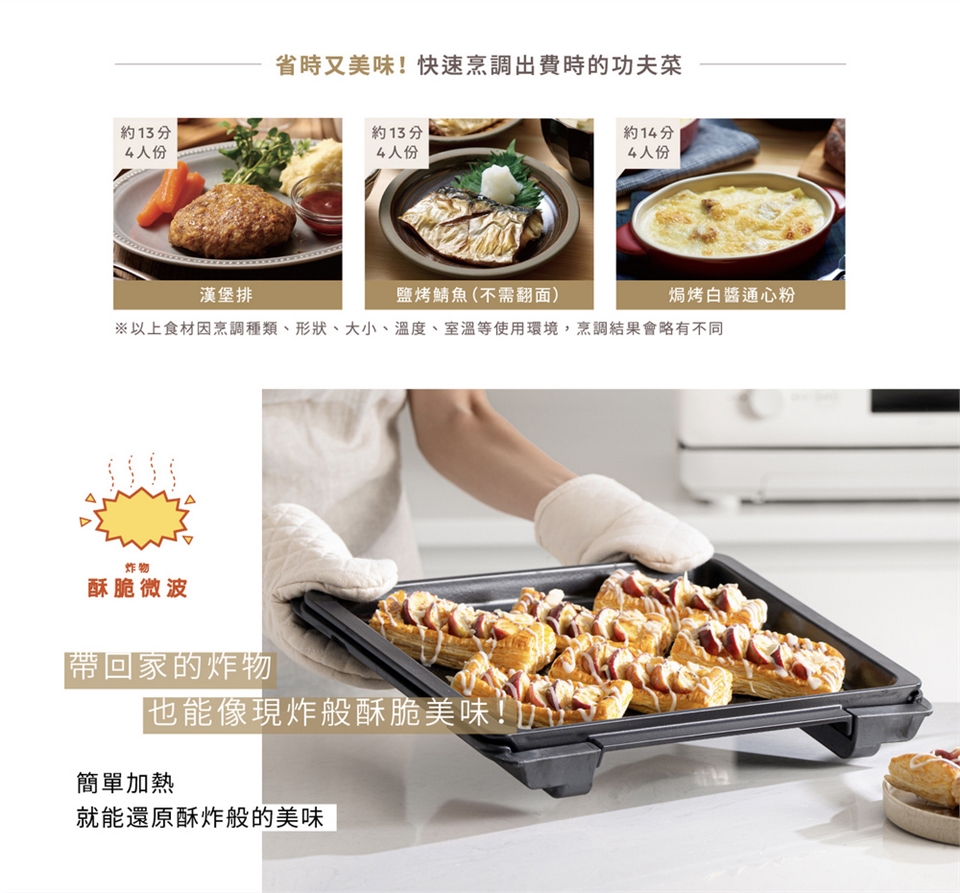 (3)酥脆微波讓熟食炸物外部酥脆,內部溫熱,宛如現炸般美味。