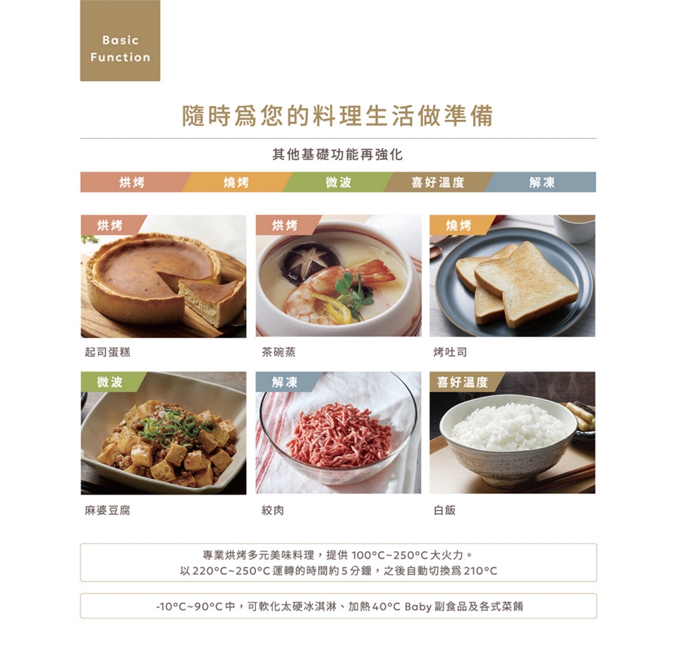 (5)高火力250℃提供多元烘烤料理。