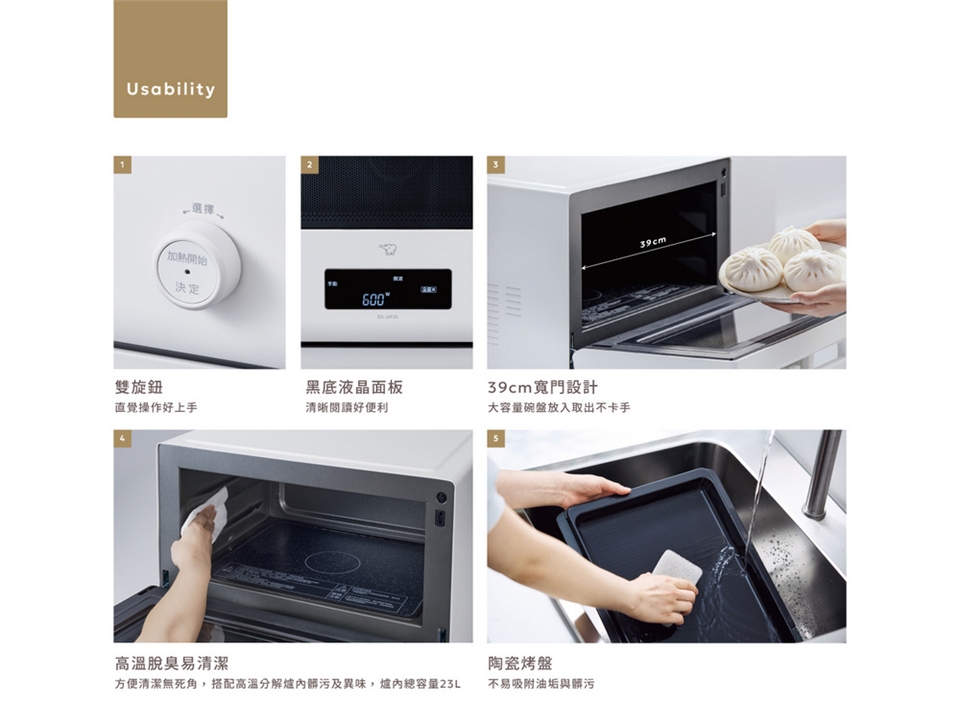 (10)方便操作貼心設計:隱藏抽屜式選單、39cm寬門、雙旋鈕直覺操作、黑底液晶面板。