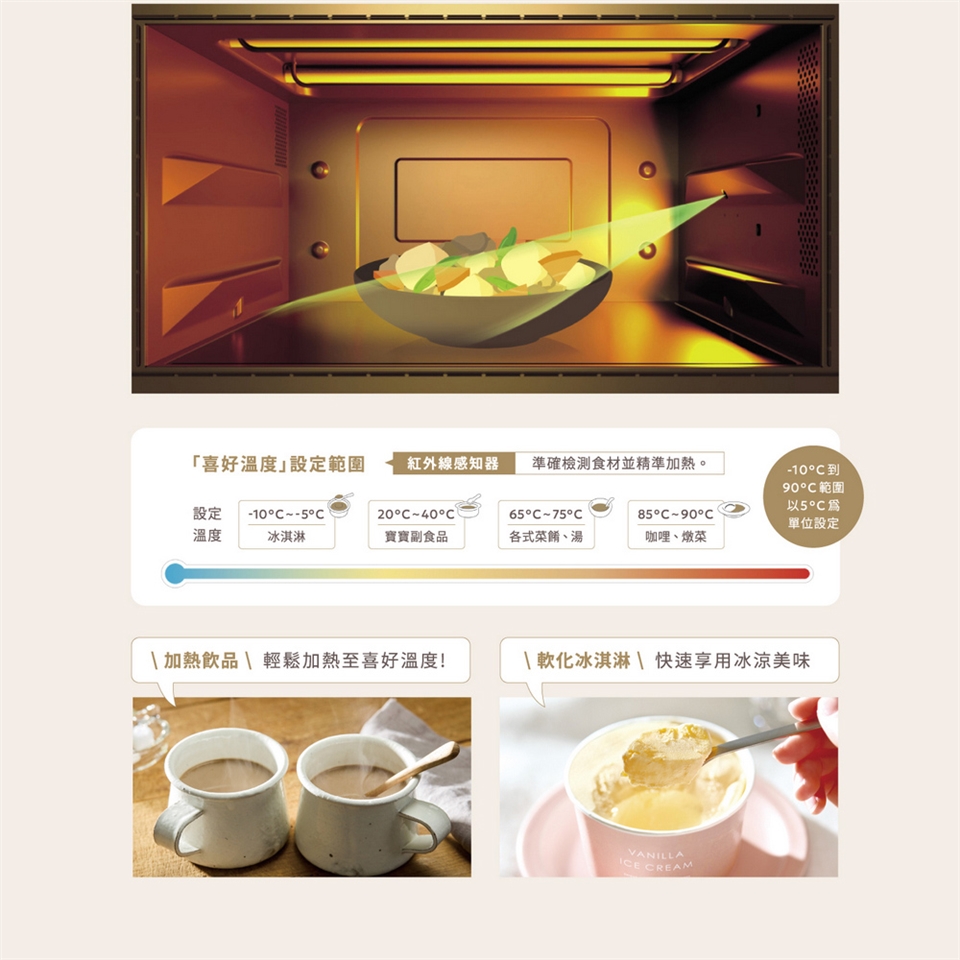 (4)喜好溫度-10~90℃,紅外線感知器精準加熱。