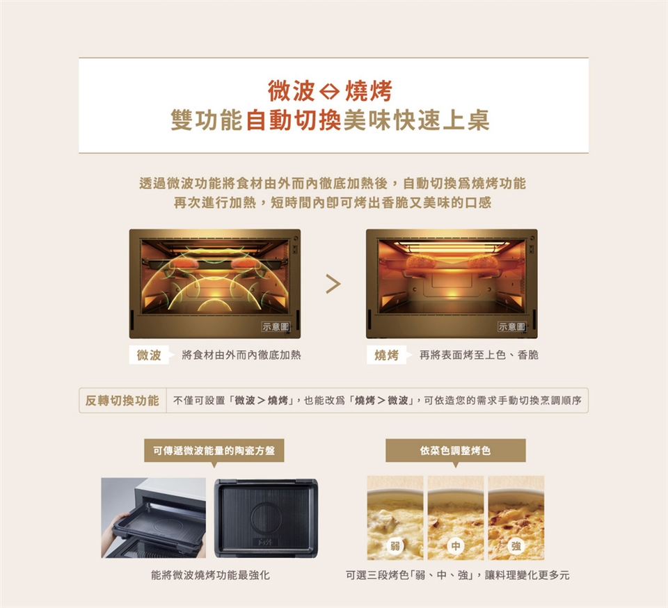 (2)陶瓷方盤可傳遞微波能量,微波燒烤自動切換。