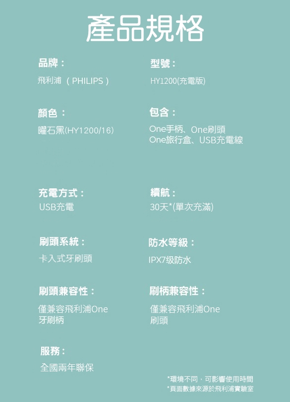 刷頭型號:飛利浦One刷頭