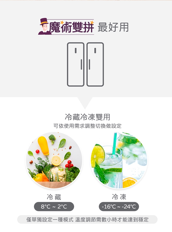 1. 產品僅能降溫,無法升溫,如需冷凍模式轉回冷藏模式,建議將產品門打開通風,靜置到0度以上.並將箱體內擦拭乾淨,再使用。