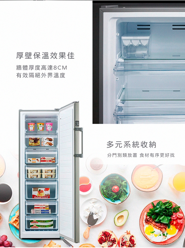 2. 冷藏/冷凍產品時,務必將食材密封完正,減少開關門,減少箱體內濕度,以達到最佳除霜效果以及水盤蒸發效果。