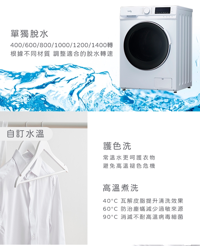 內建排水馬達,脫水及烘衣時,馬達都會進行排水動作。(排水方式不受限,擺放位置選擇更多元)