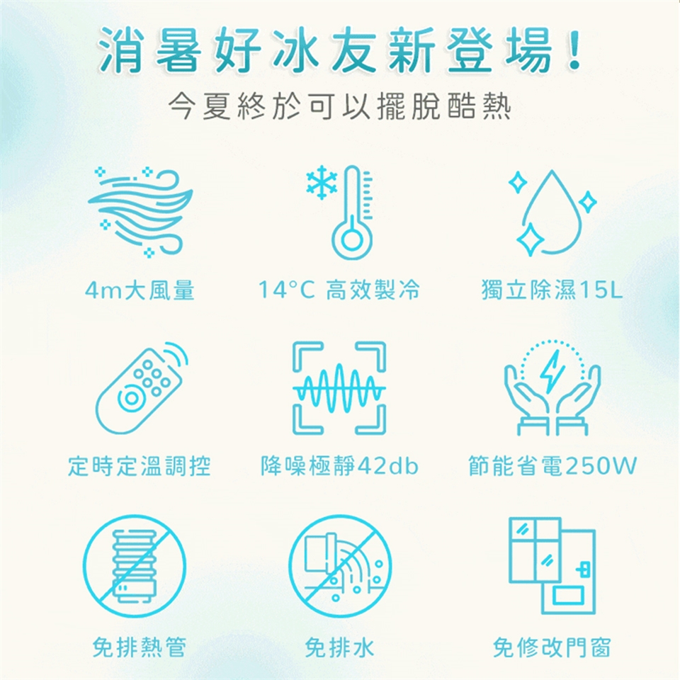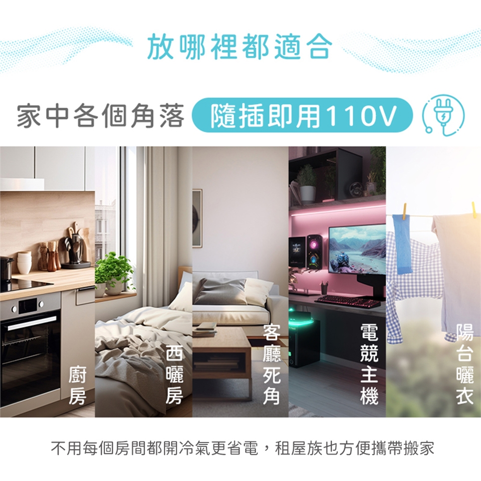 ★省電多用途 炎炎夏日最佳良伴,相比9000BTU普通空調節省80%的電力,廚房、小辦公室、警衛室、西曬房....等空間皆適用,解決固定式冷氣吹不到的熱區。