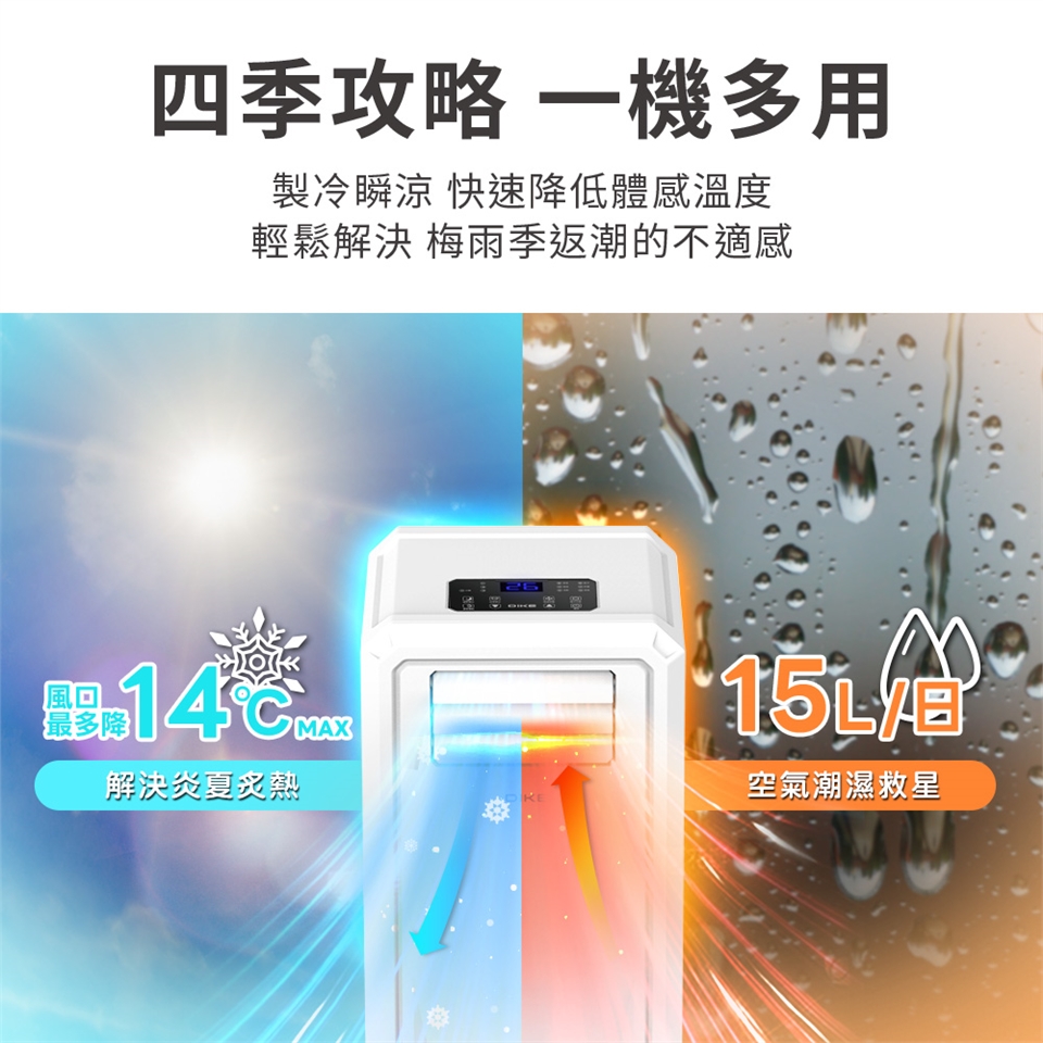 ★一機多用超便利 製冷、除濕、送風3合1,一年四季皆可使用,可設定自己喜愛的溫度及濕度,打造最舒適的個人環境