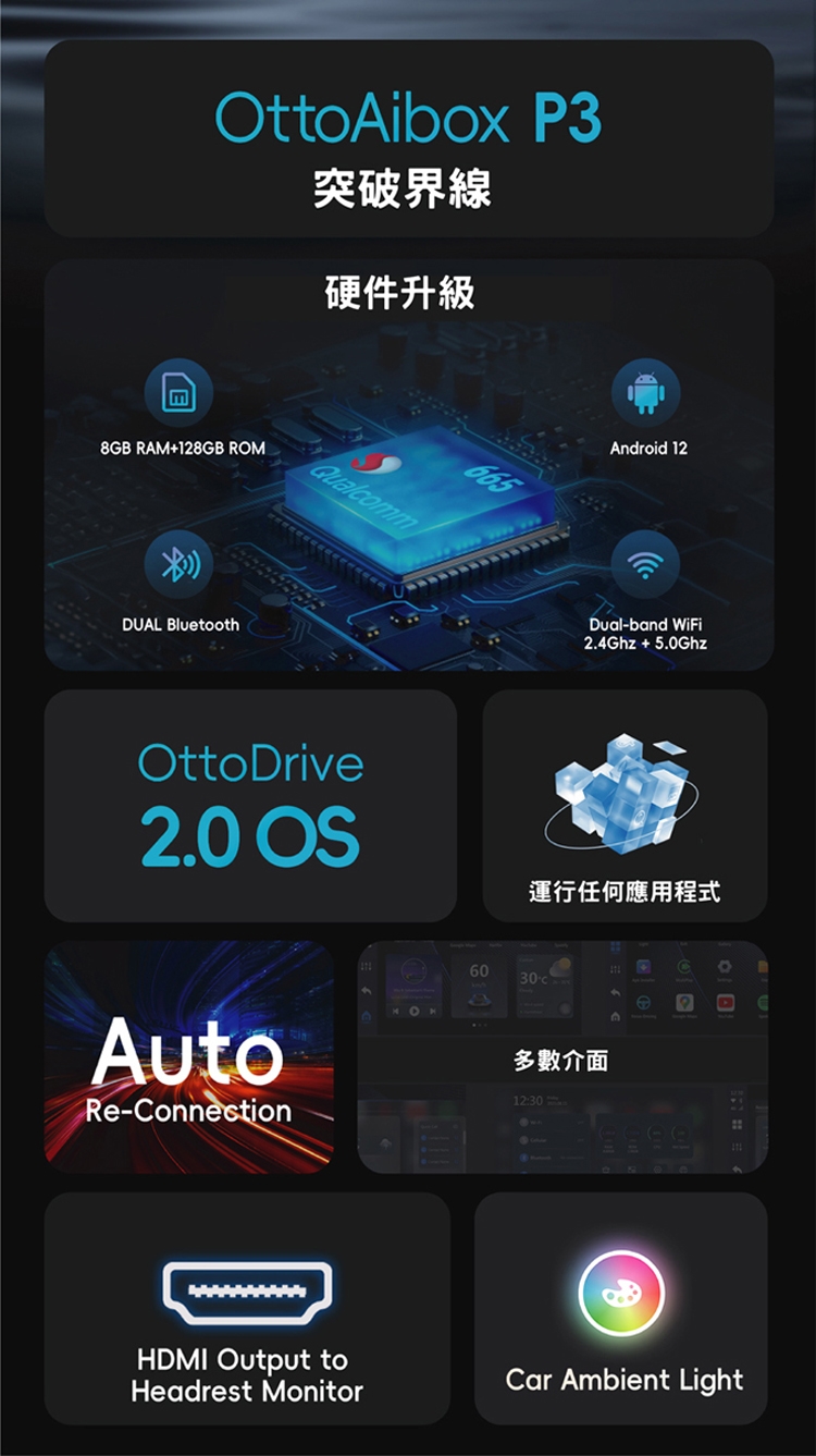 Ottocast P3 Aibox 智能車機 CarPlay 八核心+128GB內存 車載影音盒 安卓盒 隨插即用 (公司貨)