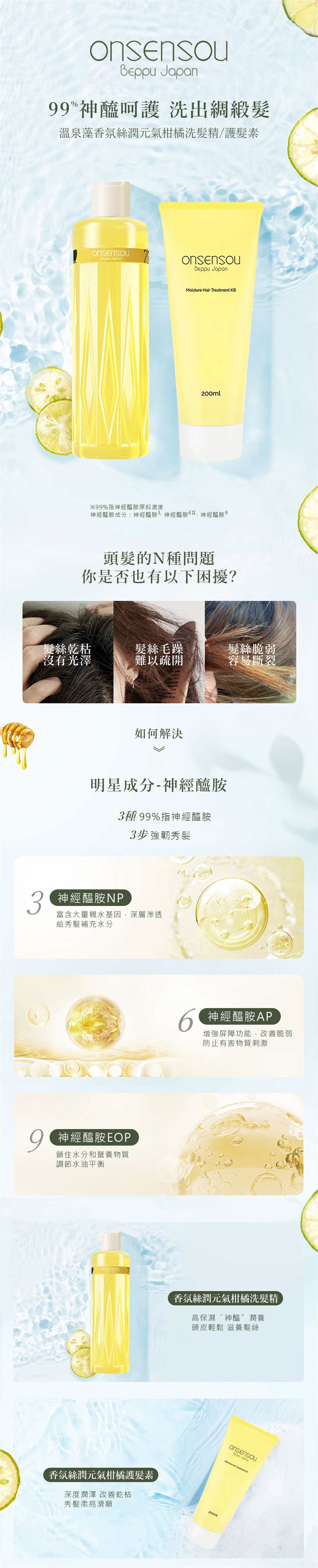 - 12種氨基酸營養成分+三重神經醯胺+溫泉藻精華