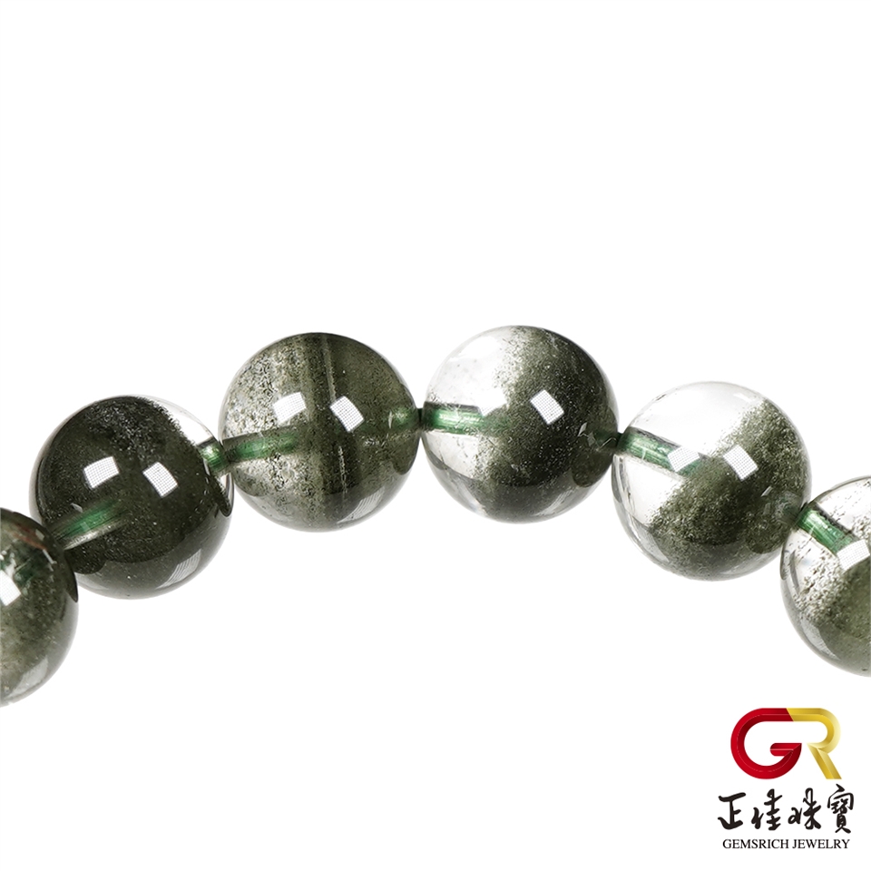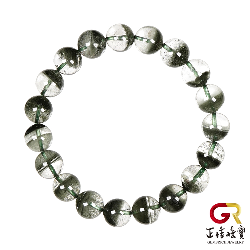 主角:綠幽靈 頂級玻璃體聚寶盆 9.8-10.2mm 綠幽靈手珠|日本彈力繩