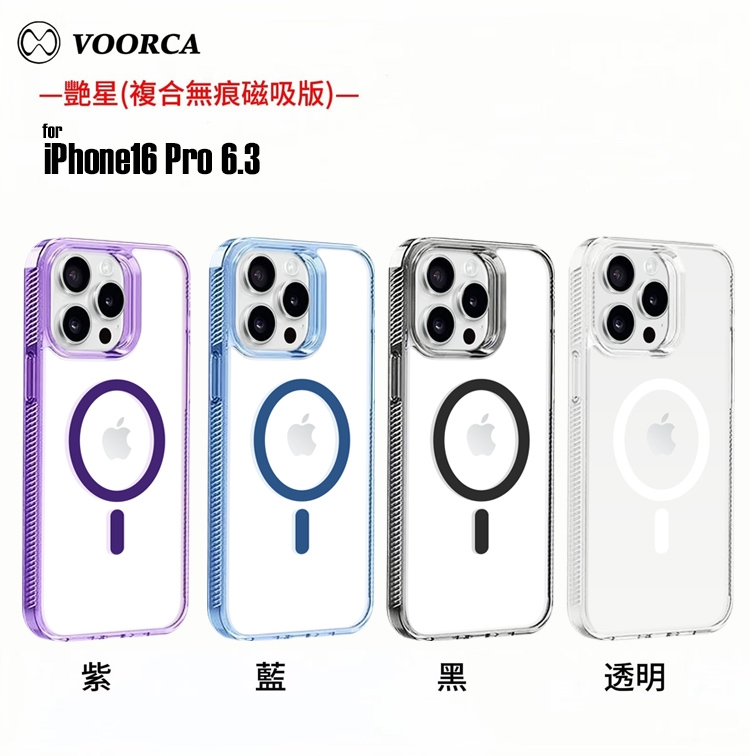 VOORCA for iPhone16 Pro 6.3 豔星複合無痕磁吸版透明軍規保護殼