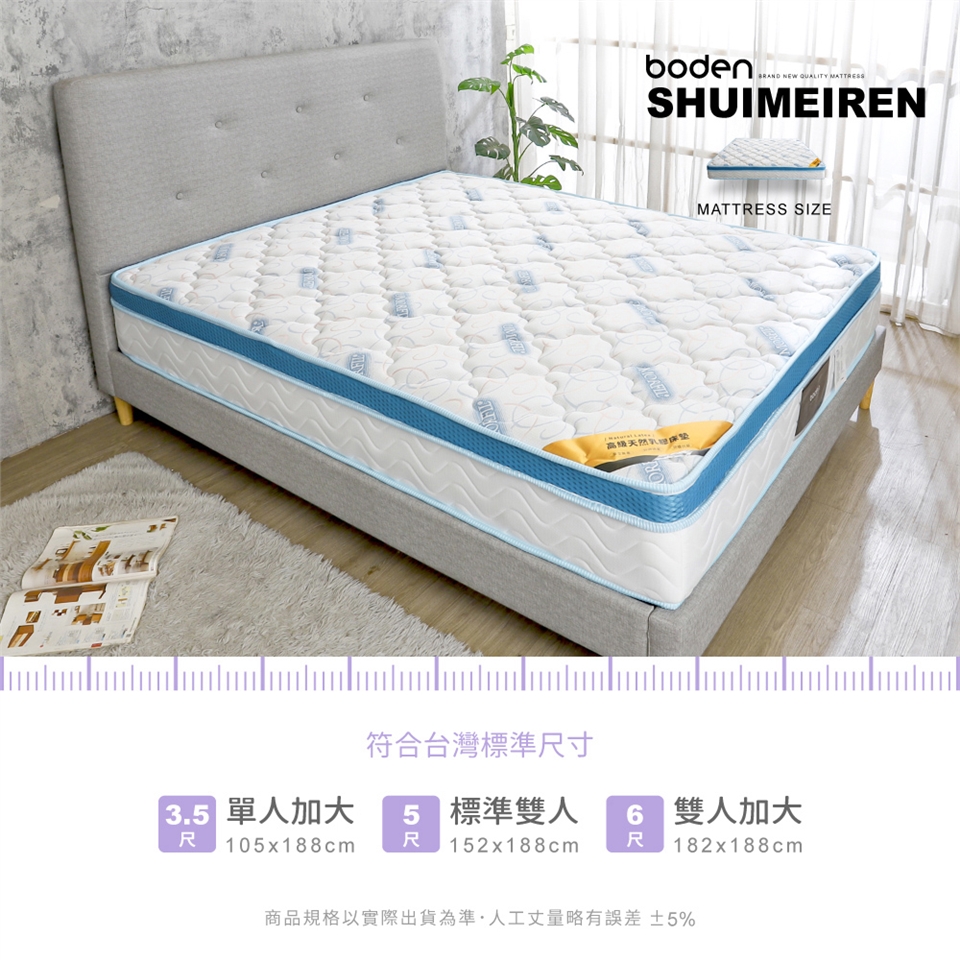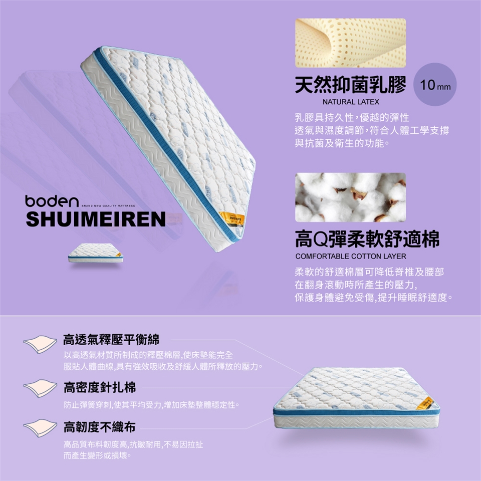 10mm無毒天然乳膠,持久及優越的彈性,符合人體工學支撐與具抗菌及衛生特性!