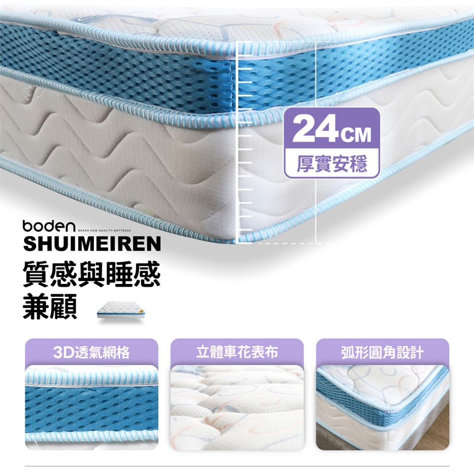 三線獨立筒設計,不僅美觀更能穩固床緣,有效固定床墊內材,延長床墊使用壽命!