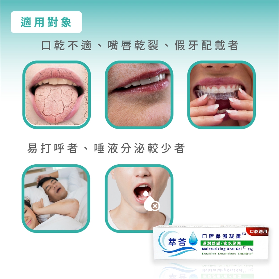 口乾不適、嘴唇乾裂、假牙配戴者、容易打呼者以及唾液分泌較少者