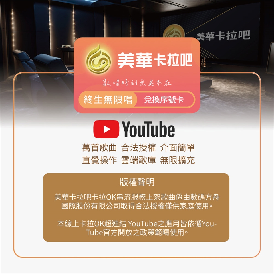 ◎搭載美華卡拉吧終生使用會員(序號卡刮除將視同正式使用不得退貨)