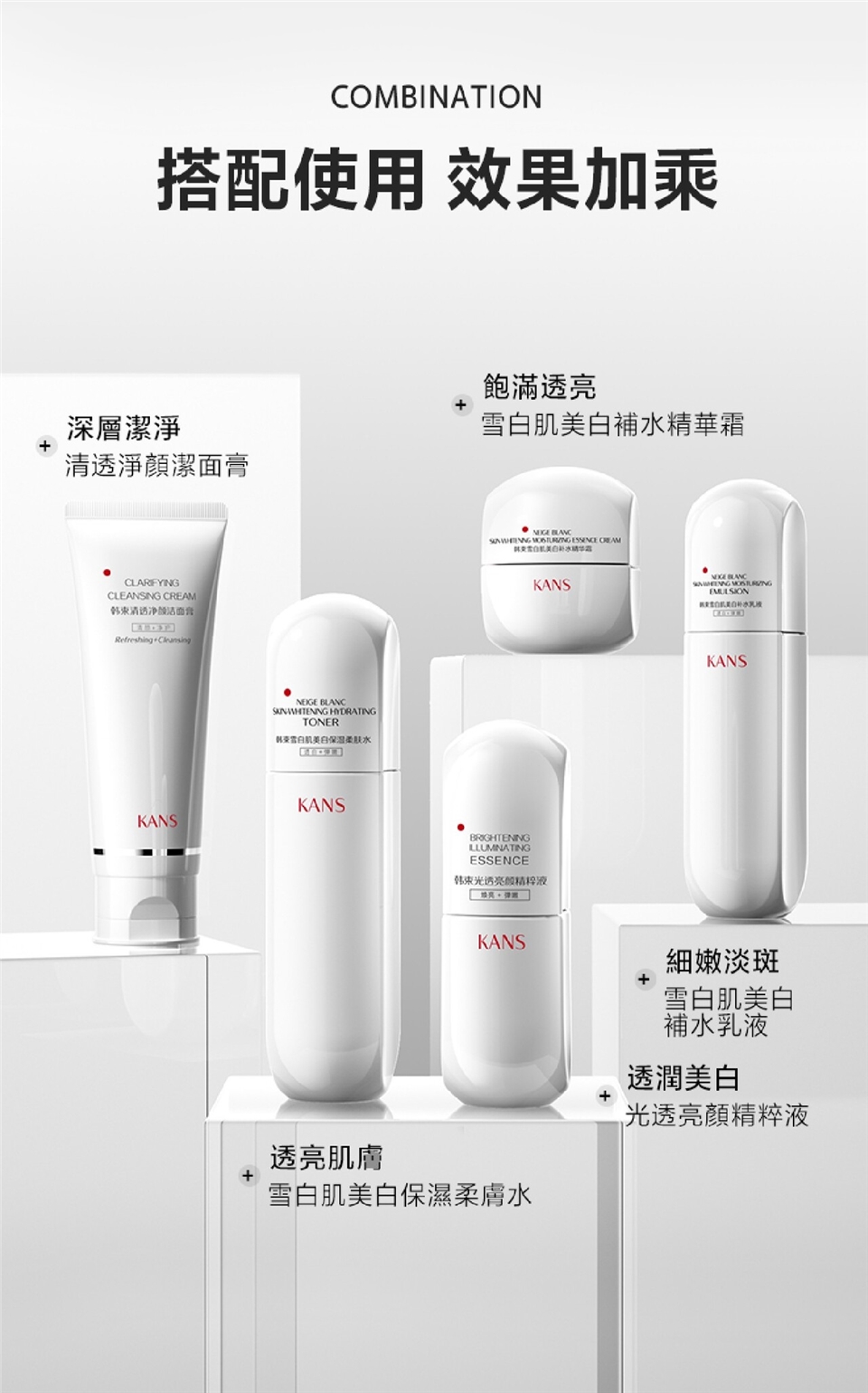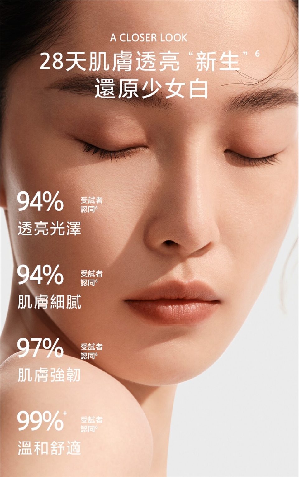 多鏈路美白:多重美白成分,從內到外煥白,讓肌膚重現白皙光彩。