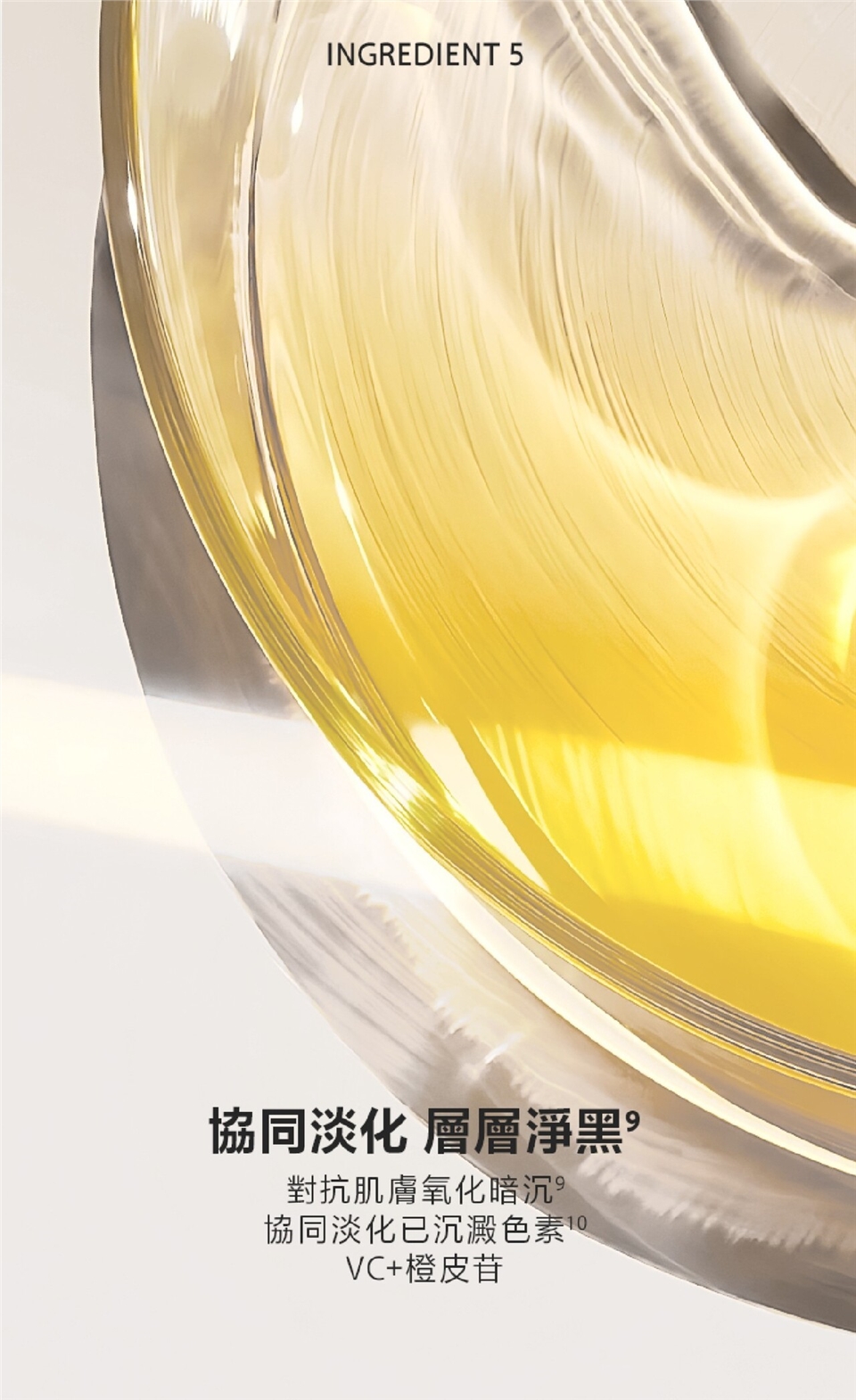 九肽-1、VC衍生物:源頭端抑制黑色素生成,有效美白。
