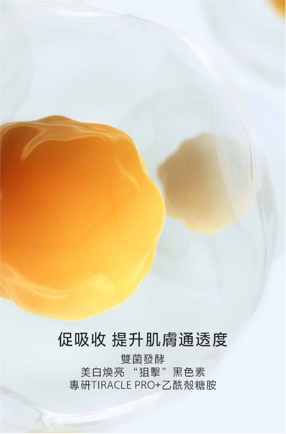 專利升級的TIRACLE PRO技術,採用組合式全鏈路煥白方案,全面狙擊黑色素,從源頭到生成端,全面提升肌膚透亮度。