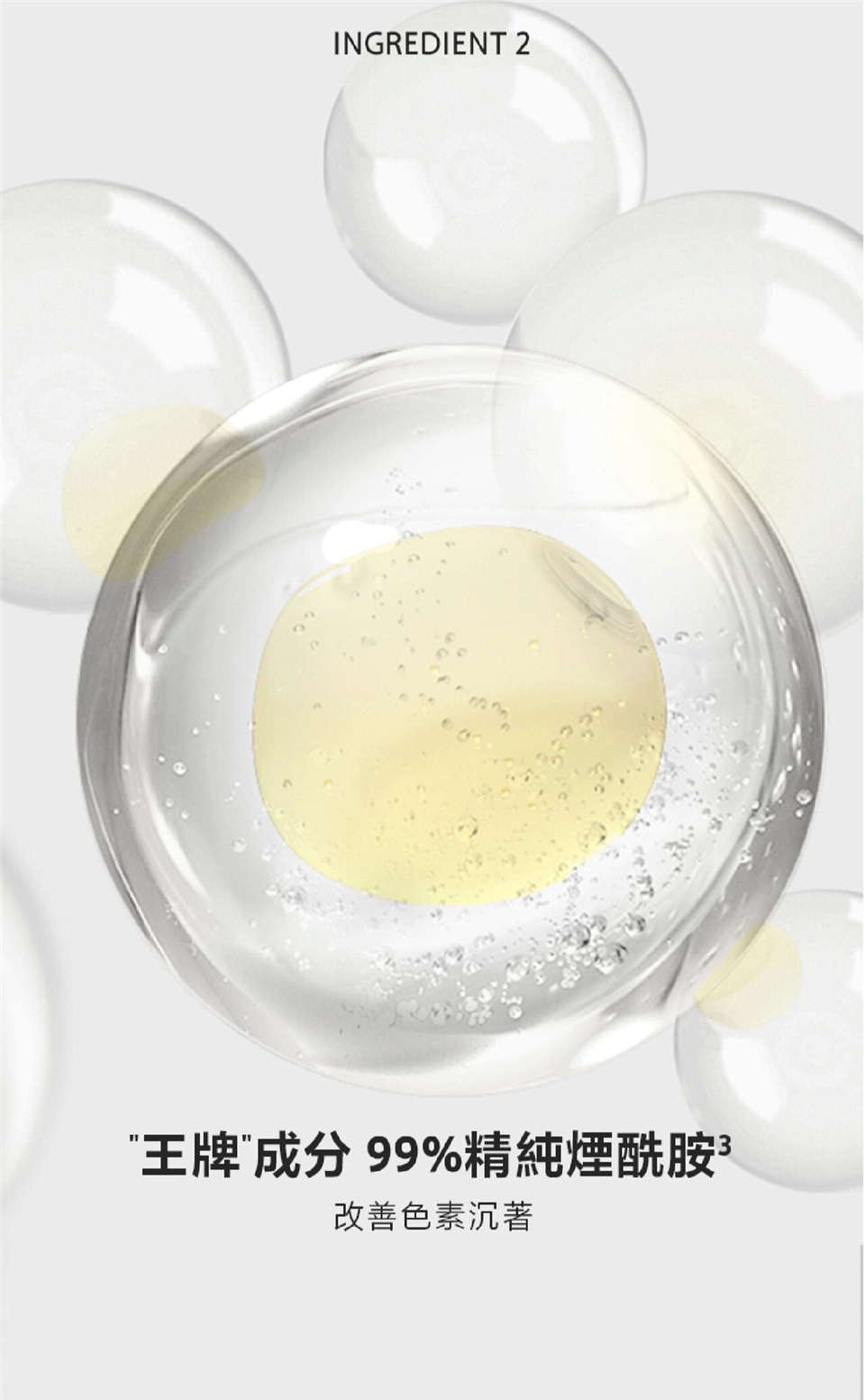 煙醯胺:轉運端抑制黑色素傳輸,提升肌膚均勻度。