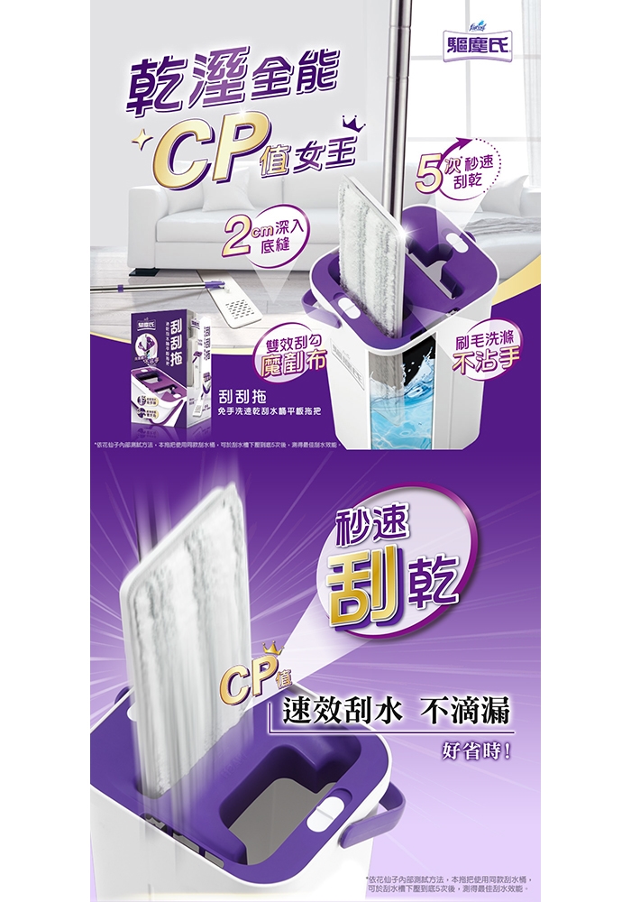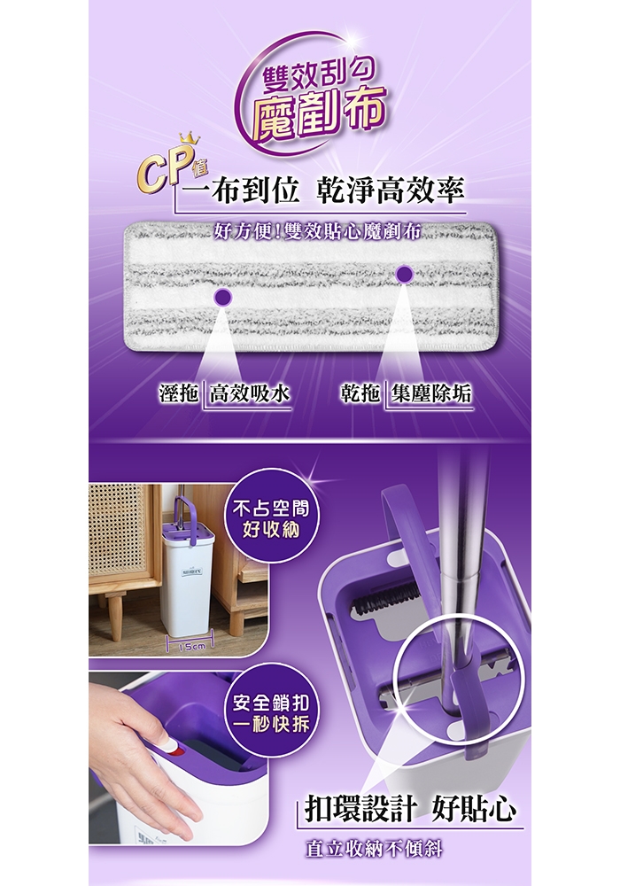 ◆ 一桶雙槽即刮即拖,免手洗不用手擰
