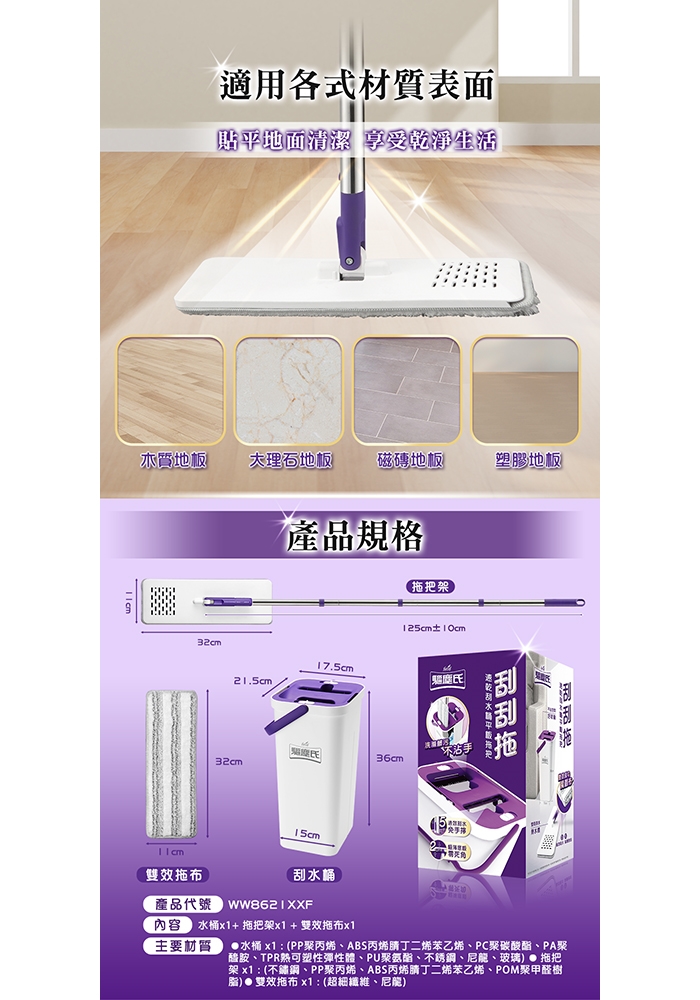 ◎ 內容物:水桶x1+拖把架x1+雙效拖布x1