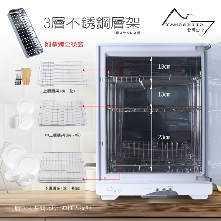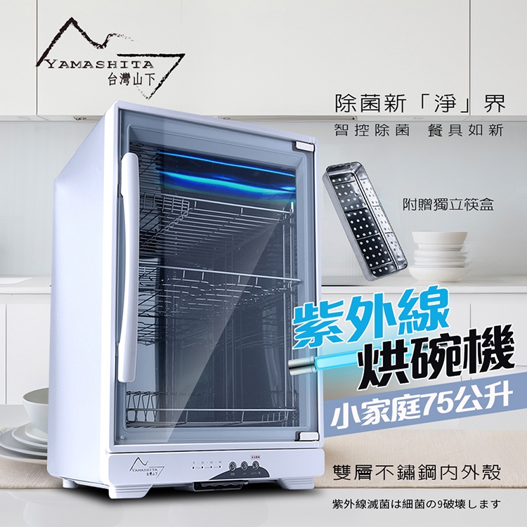 【YAMASHITA 台灣山下】75L三層全不鏽鋼紫外線烘碗機(YS-7531D)保固一年到府收送