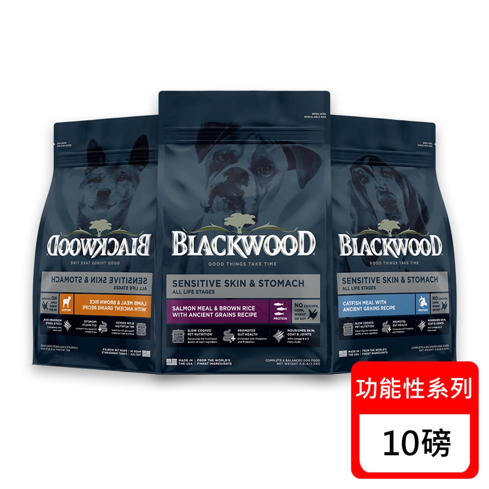 濃縮鯰魚、大麥、燕麥、小米、高粱、菜籽油(以維生素E保存)、濃縮白魚肉、甜菜漿、天然香料、磷酸二鈣、亞麻籽、鹽、氯化鉀、菊苣纖維、L-蘇胺酸、蔓越莓、藍莓、L-離胺酸、DL-蛋胺酸、維生素E(天然保存劑)、絲蘭萃取物、碳酸鈣、維生素E補充劑、胺基酸螯合礦物質(鋅、鐵、錳、銅)、L-抗壞血酸-2-多磷酸鹽(維生素C來源)、菸鹼酸補充劑、乾燥海帶、D-泛酸鈣、維生素B2補充劑、維生素B12補充劑、維生素B1、維生素A醋酸酯、維生素B6、維生素D3補充劑、生物素、葉酸、亞硒酸鈉、碘酸鈣、乾酪乳桿菌、嗜酸乳桿菌、動物雙歧桿菌、羅伊氏乳桿菌。