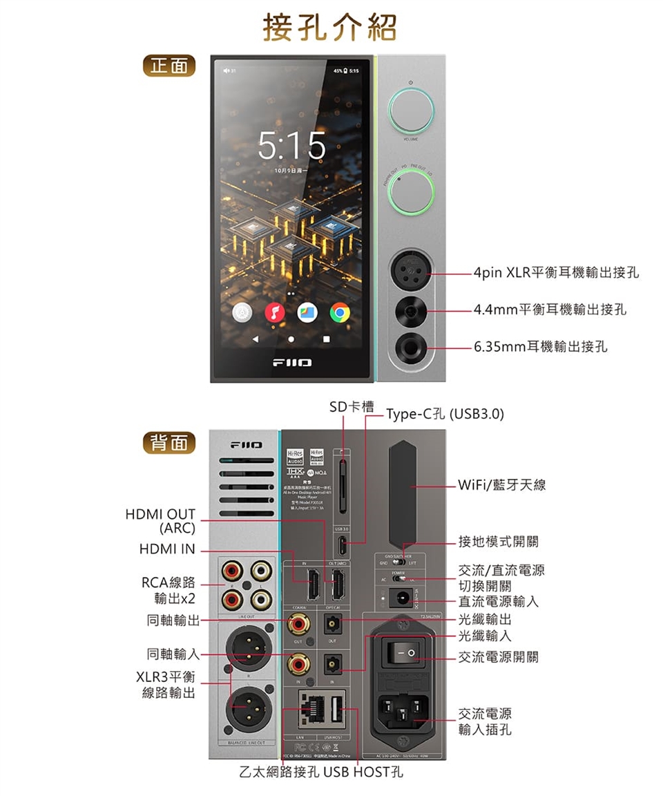 音源輸出:4.4m/6.35mm/XLR3/XLR4/光纖/同軸/RCA